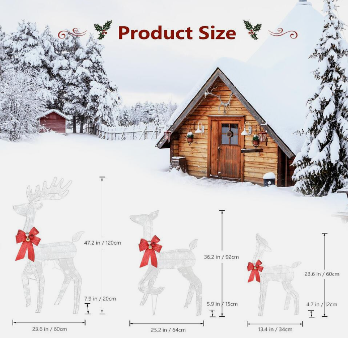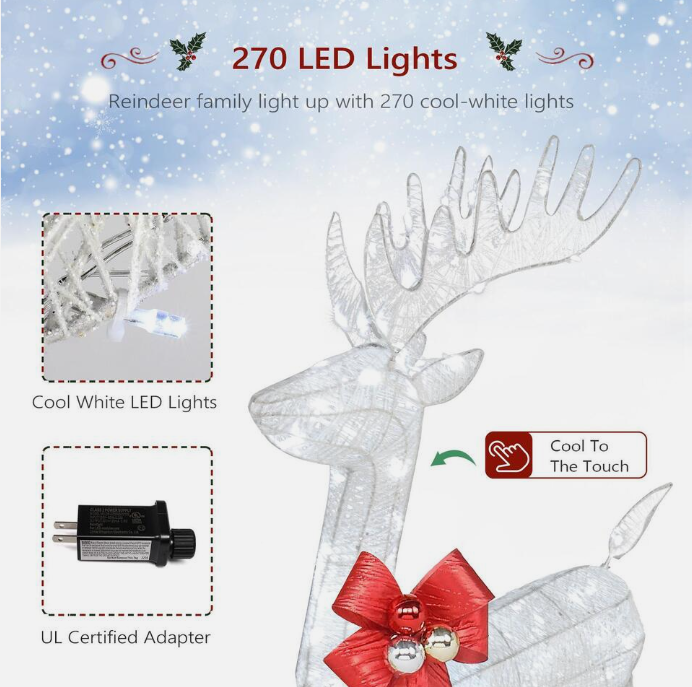 3-Piece Reindeer Family Lighted Deer Set for Indoor Outdoor Christmas Decoration