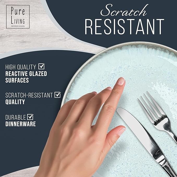 32 Piece Dinnerware Sets for 8 - Mediterranean Stoneware Dinnerware Set - Microwave Safe Dinner Plates and Bowls Sets for 8, Ceramic Dish Set, Bowl and Plate Sets for 8, Beige Blue Dishes Set for 8