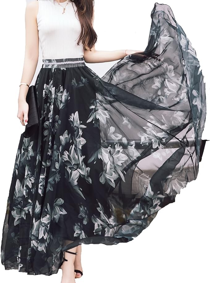 • Lightweight chiffon swing summer beach long skirt,It can be worn with tank tops, t-shirts, bikini, sandals, straw hat, flats, heels etc.