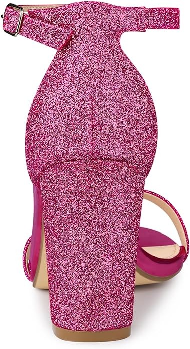 Allegra K Women's Glitter Ankle Strap Chunky Heels Sandals