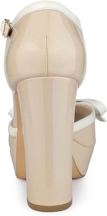Allegra K Women's Platform Bow T Strap Chunky Heels Pumps