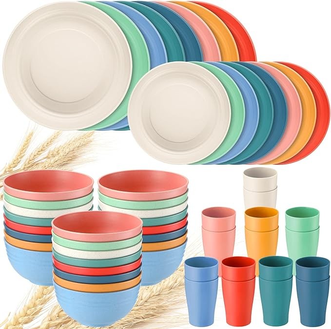 • Lightweight and Anti Shatter: compared with ceramic tablewares, our wheat straw tableware set is more lightweight and not easy to break; These plate and bowl sets are drop and odorless, making them safe for everyone, and you don't need to worry about children breaking tableware