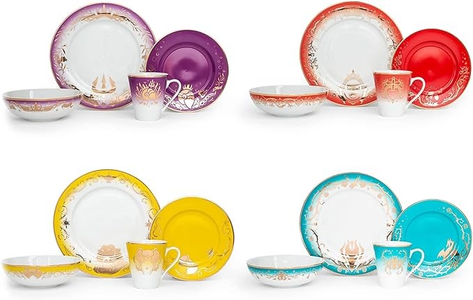 Magical Mealtime: Give your tabletop a wicked touch with this trendsetting Disney Villain 16-piece dinnerware set. The classic Baroque style is both elegant and chic, featuring themed designs inspired by popular Disney antagonists.
