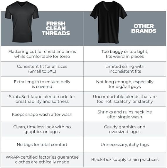SOFT YET DURABLE FABRIC: Our very breathable 4PK V-Neck t-shirt is machine-washable and made with an insanely comfy cotton-poly fabric blend that gives it a soft, lightweight feel that’s durable and long-lasting, thanks to high-quality material and strong stitching.