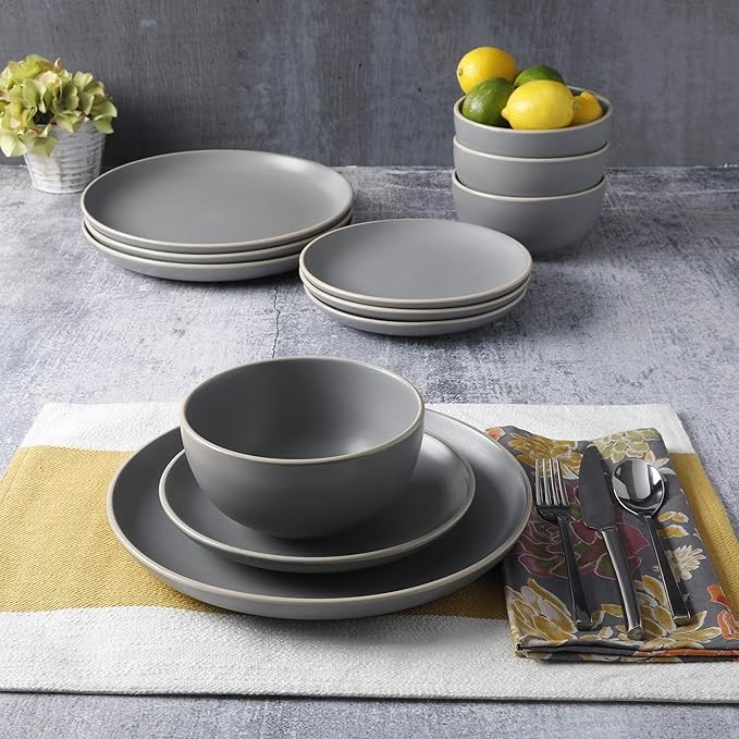 Gibson Home Rockaway 12-Piece Dinnerware Set Service for 4, Grey Matte -