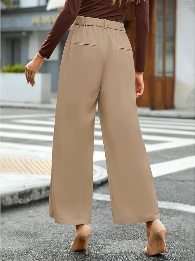 • Two inseam options: Regular-30'' and Petite-28''. GRAPENT khaki pants for women feature in high-waisted wide leg style, baggy loose fit, pleated front, elastic back, zip up with button closure, 2 functional real side pockets and 2 decorative fake back pockets.