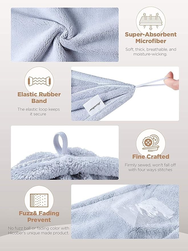 • STURDY AND EASY TO USE DESIGN: Experimental proof that the Hicober hair towel will not deform or shrink after 10000 washes. Hicober offers a two-year product care and 24/7 customer support, ensuring you have help whenever you need it.