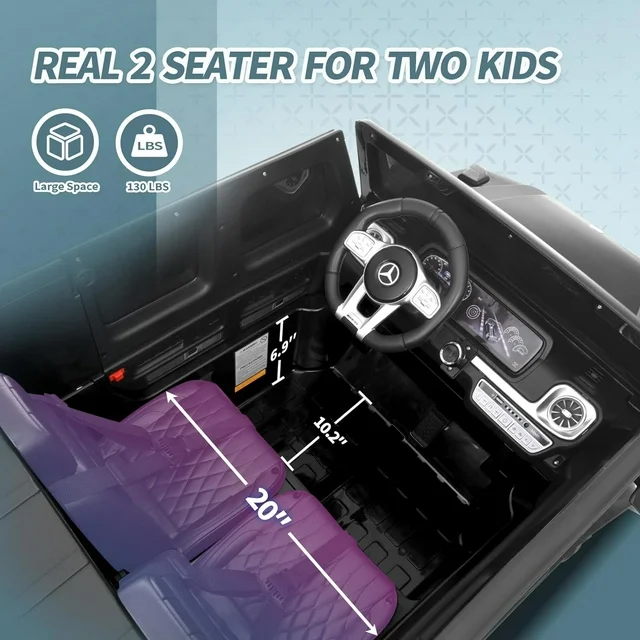 Real 2-Seater & 12V Engine: Joywhale 12V Kids Ride on Licensed G63 has almost restored the real car's appearance, the luxurious and realistic appearance can give children an excellent driving experience. And equipped with large 2-seater & 12V dual motors power configuration, which can provide strong power on various terrains for two kids. The 20" extended seat can give kids more comfortable driving experience.