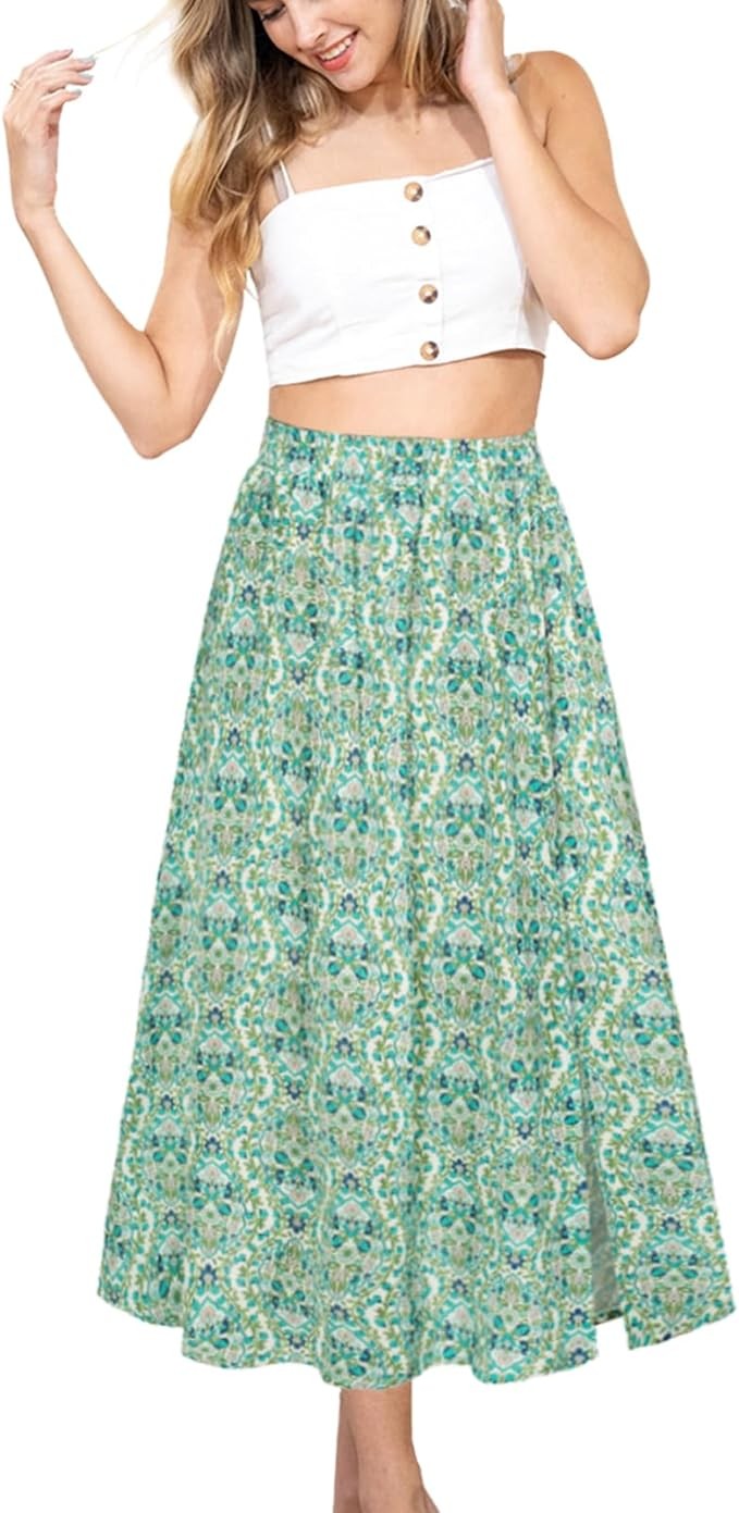 Trendy Design--High waist, elastic waist, boho floral, side slit, a line, swing details, maxi-length, regular fit, flowy skirt, casual skirt, weekend skirt, basic skirt. Perfect for women and girls, the trendy floral flowy skirts are very eye-catching.