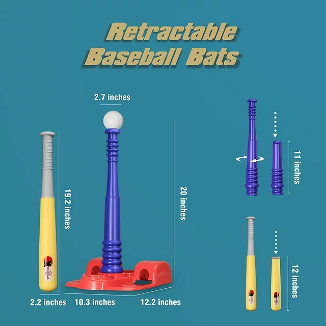 • Kids T-ball Set - The YCFUN baseball toy set includes a retractable baseball bat, baseball bases, 6 balls, and a mesh bag for storing balls. These are parent-child games suited for playing indoors or outdoors, as well as multiplayer games or even playing with pets.