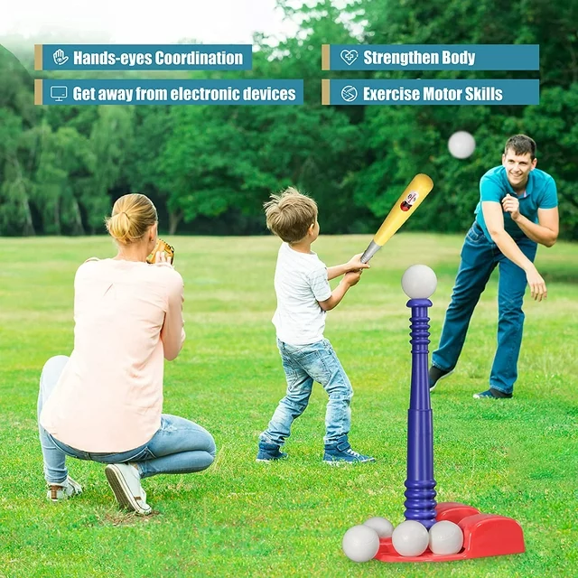 • Easy For Kids To Start Playing - tball set comes with 6 plastic tee game balls and has an oversize plastic baseball bat. Kids can hit the ball easily with several practices, so as to enjoy the fun of baseball.