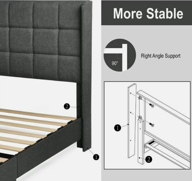 Wingback Headboard: This queen-size platform with headboard has a linen-inspired fabric finish with buttonless square tufting for a classy look.
