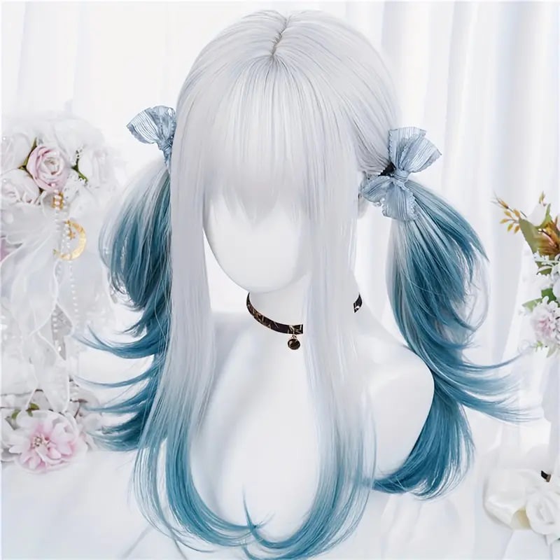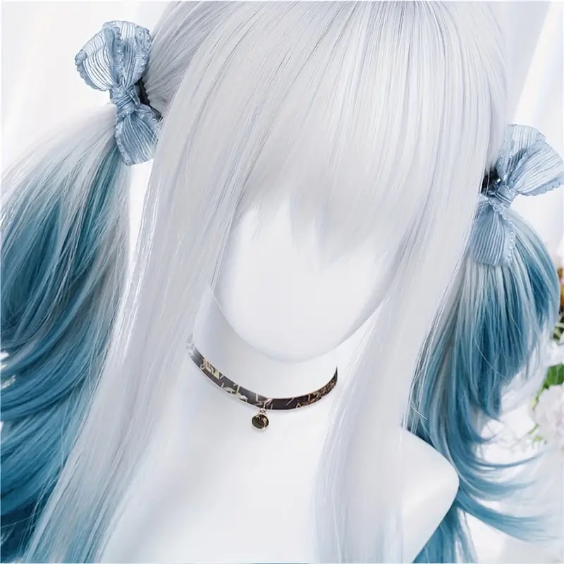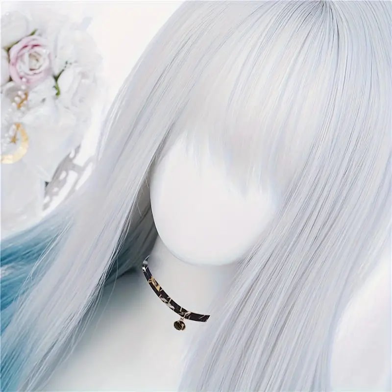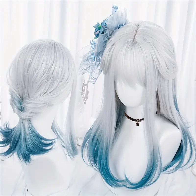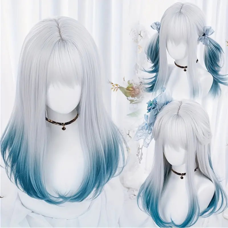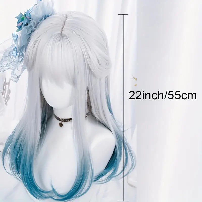 women synthetic wig long straight ombre two tone silvery grey blue hair for cosplay with bangs anime cosplay wig costume wig for halloween party details 0women synthetic wig long straight ombre two tone silvery grey blue hair for cosplay with bangs anime cosplay wig costume wig for halloween party details 0